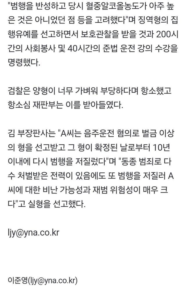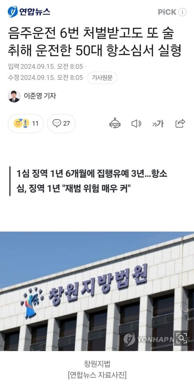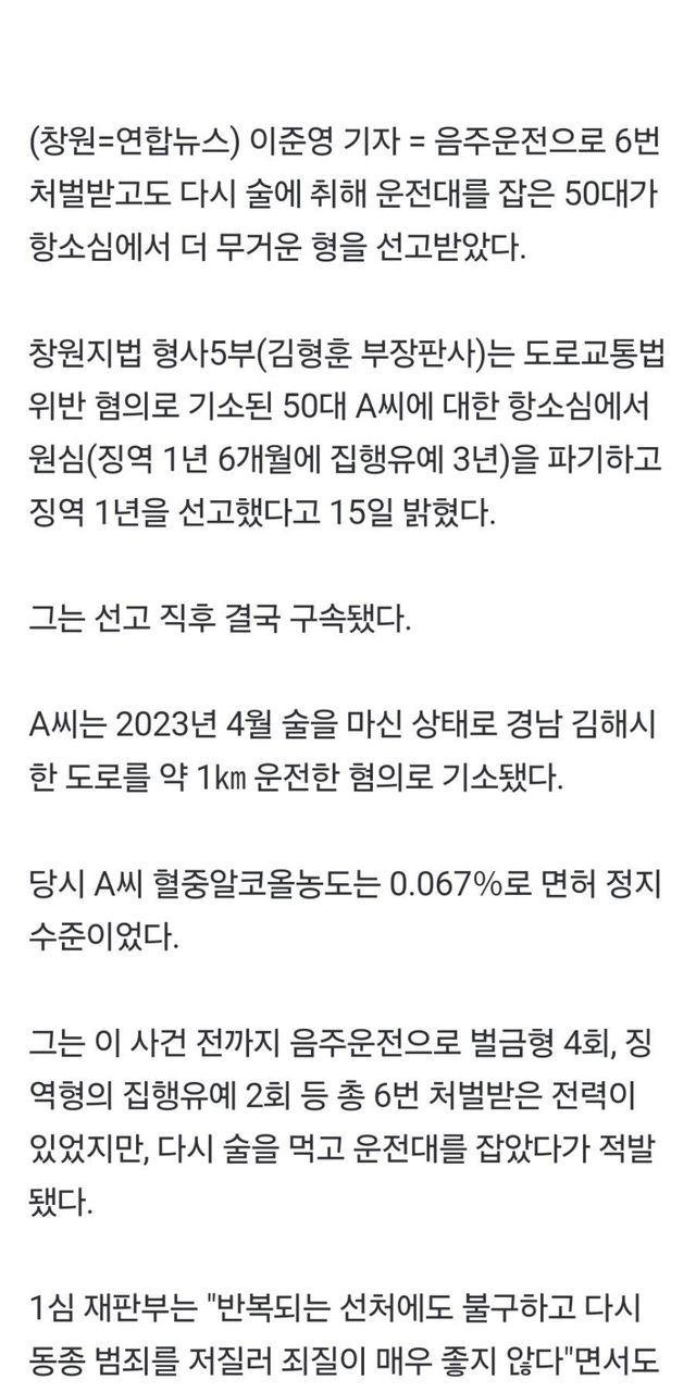 음주운전 7번이나 적발 됐는데 고작 1심 집행유예, 항소심 징역 1년ㅋㅋ 에휴