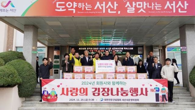 [파이낸셜경제=김영란 기자] 충남 서산시는 대한전문건설협회 서산시운영위원회가 29일 관내 어려운 이웃의 따뜻한 겨울나기를 응원하기 위해 사랑의 김장 나눔 행사를 개최했다고 밝혔다.