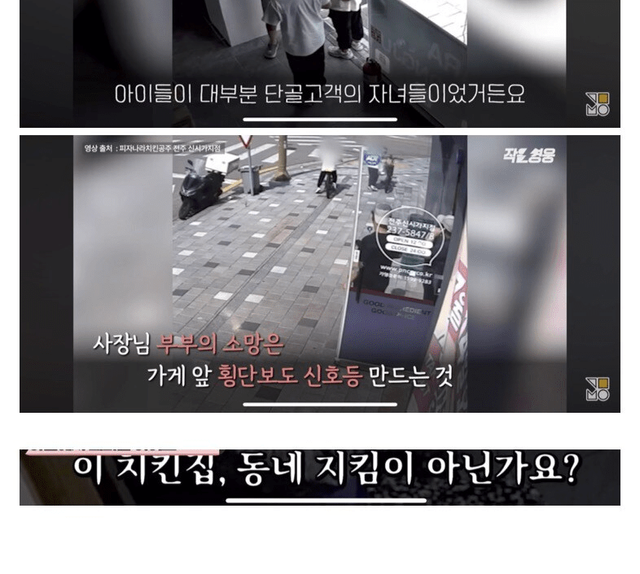 사장님 부부의 소망은 가게 앞 횡단보도 신호등 만드는것