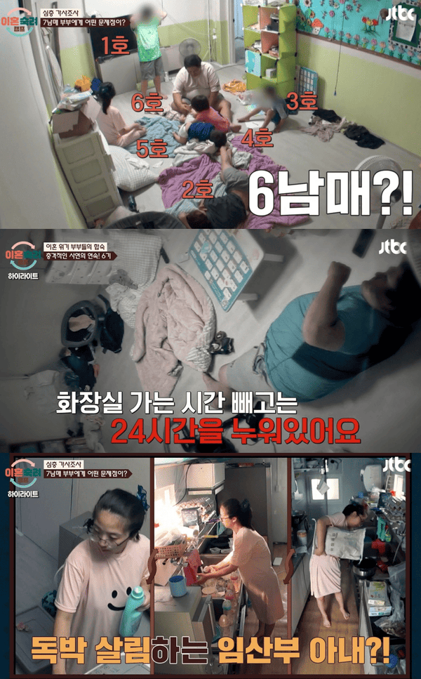 두 사람의 육아 또한 참담했다. 남편은 육아 역시 당연하다는듯 어린 첫째와 둘째에게 떠넘기는 모습을 보였다. 아내는 "애들이 많이 도와준다. 첫째하고 둘째한테 최고로 미안하다. 얘네한테 기대는것 같다. 남편은 별로 기댈수있는 사람은 아닌것 같다. 애들이 저의 버팀목이 되지 않나 싶다"고 토로했다.