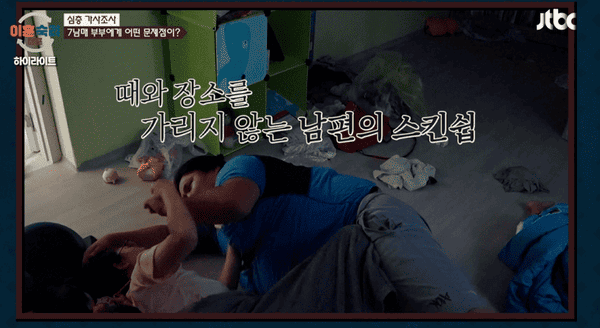 박하선은 "집안일은 왜 안하는거냐"고 물었고, 남편은 "주말 한정으로 조금씩 도와준다"고 말했다. 서장훈은 "미안한데 주말 한정은 월요일부터 금요일까지 출근하는 사람이나 주말 한정으로 도와주는거지 그자리에 계속 누워있었는데 왜 주말한정으로 도와주는거냐. 계속 공휴일인데 갑자기 뭔 주말한정으로 도와주는거냐"고 지적했다. 아내는 남편이 도와주지 않은 상황에서도 왜 가만히 있냐는 질문에 "몇번은 얘기했고 크게 싸웠다. 나는 나름대로 했다 하면서 크게 몸싸움 한적도 많다"고 밝혀 눈길을 끌었다.