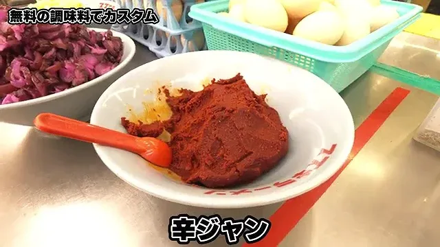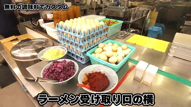 라면 접수대의 옆에는 다양한 부재료들이 준비되어 있다.
