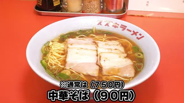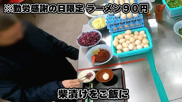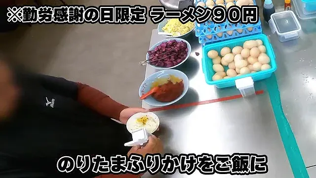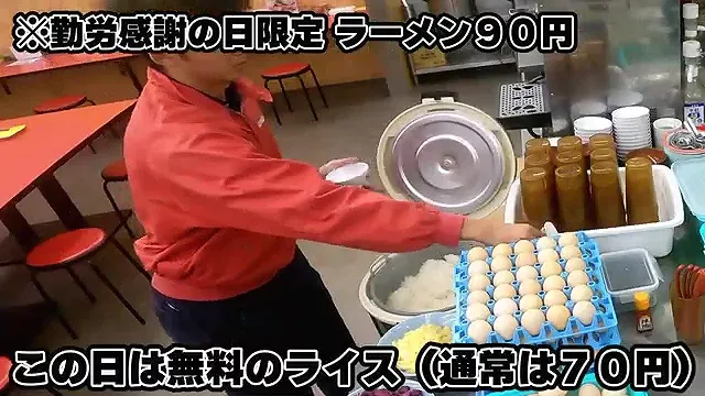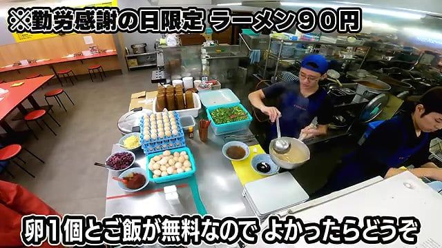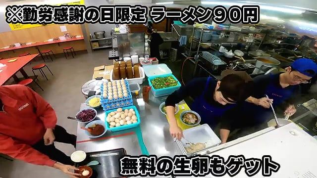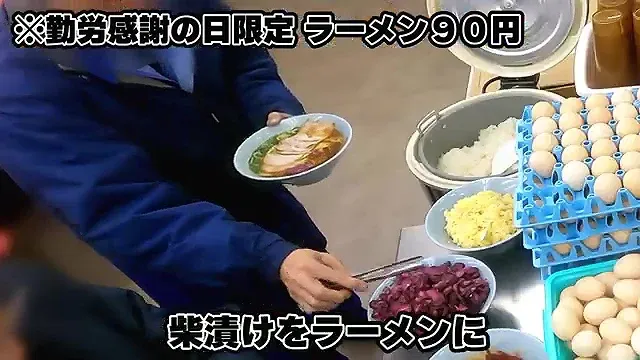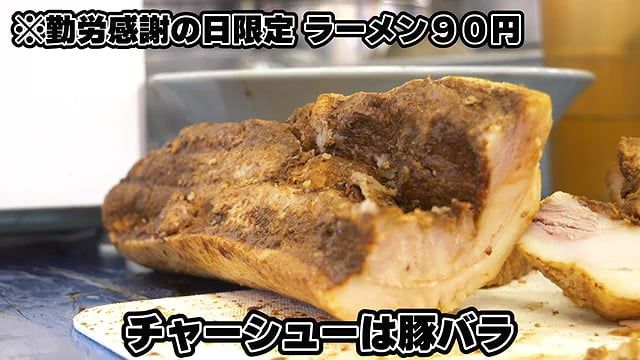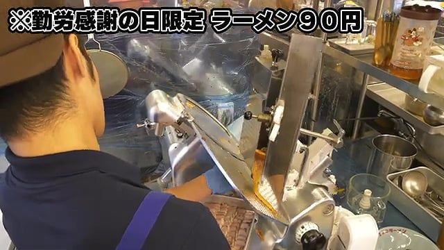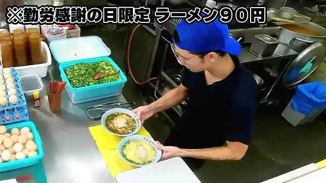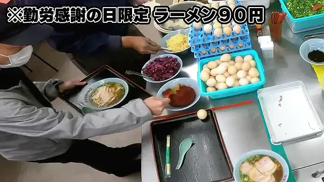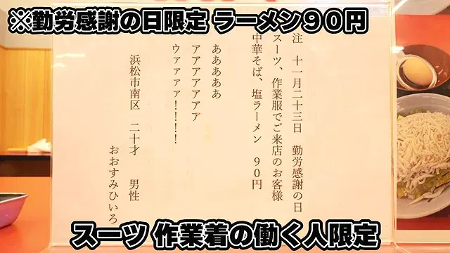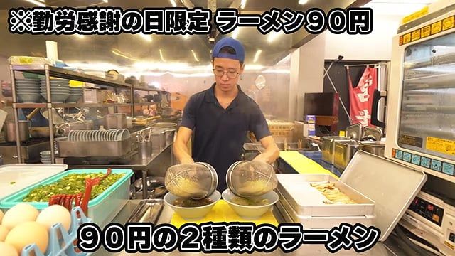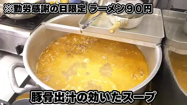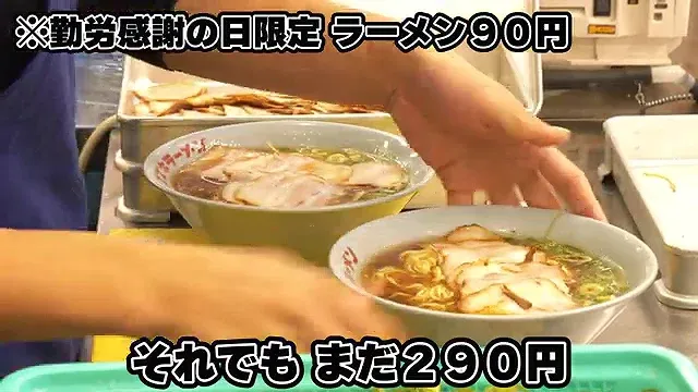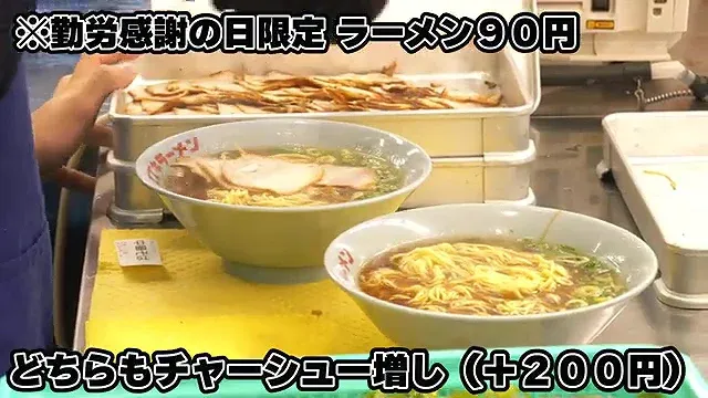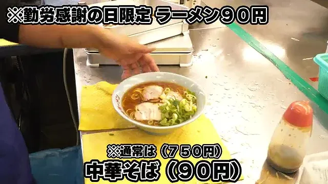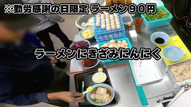 근로감사의 날에는 라멘을 90엔에 제공한다.