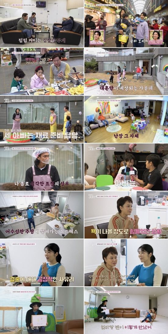 반면 신성우는 꽃대디들의 ‘수다 파티’로 인해 자꾸만 진도가 늦어지자, 연신 한숨을 쉬며 일을 재촉했다. 이 와중에도 김범수는 자꾸만 아이들과 김경미를 챙기는 척 ‘농땡이’를 부리는 ‘금쪽이’ 면모로 꽃대디들의 핀잔을 자아내기도 했다.