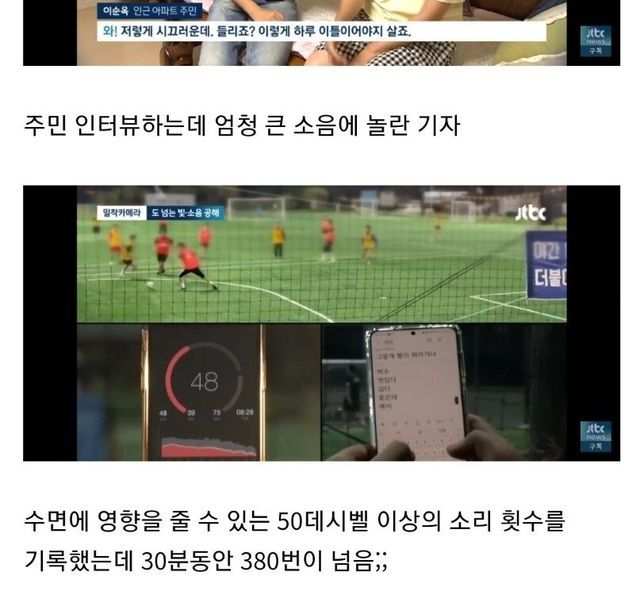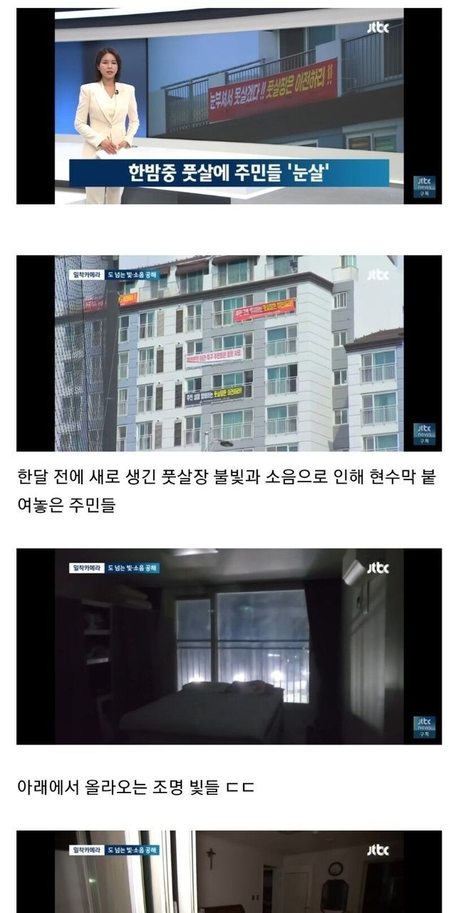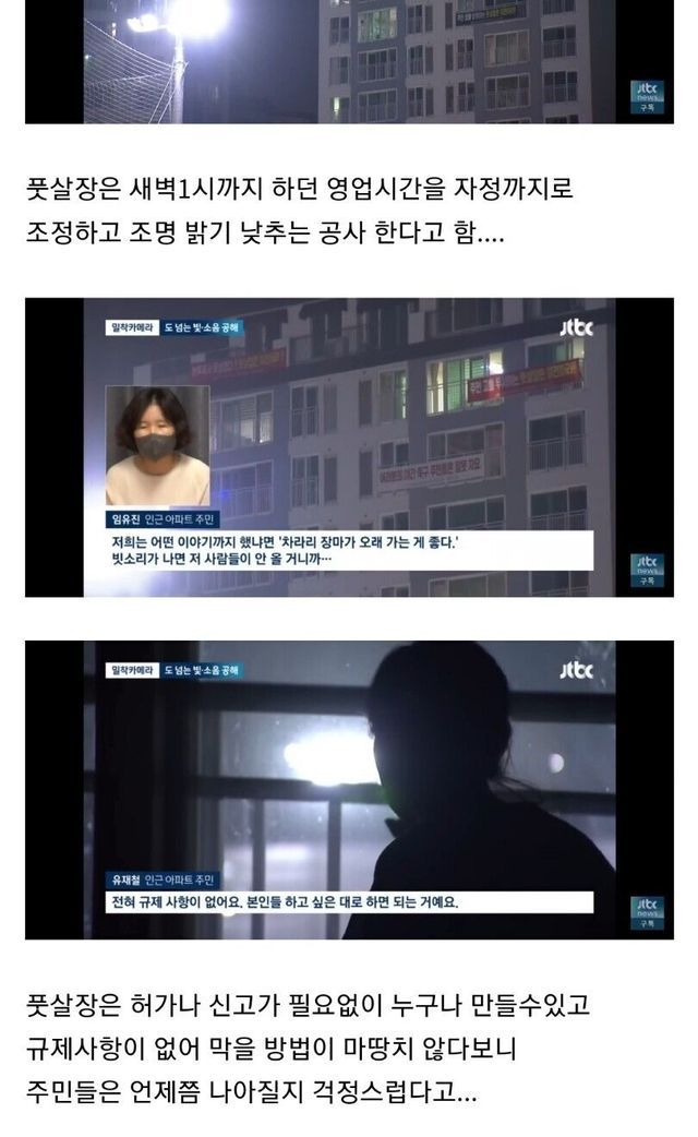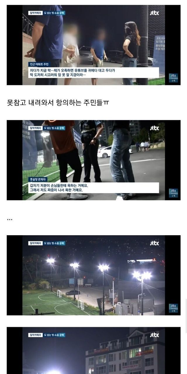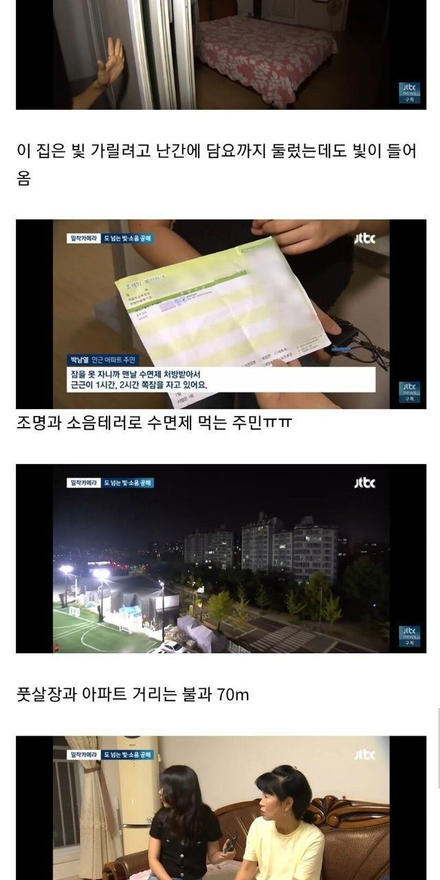 풋살장 불빛과 소음 때문에 잠못드는 아파트.