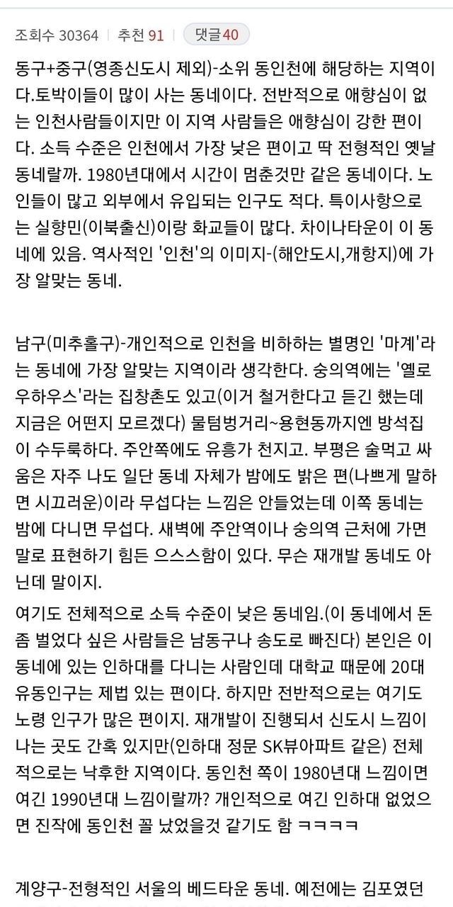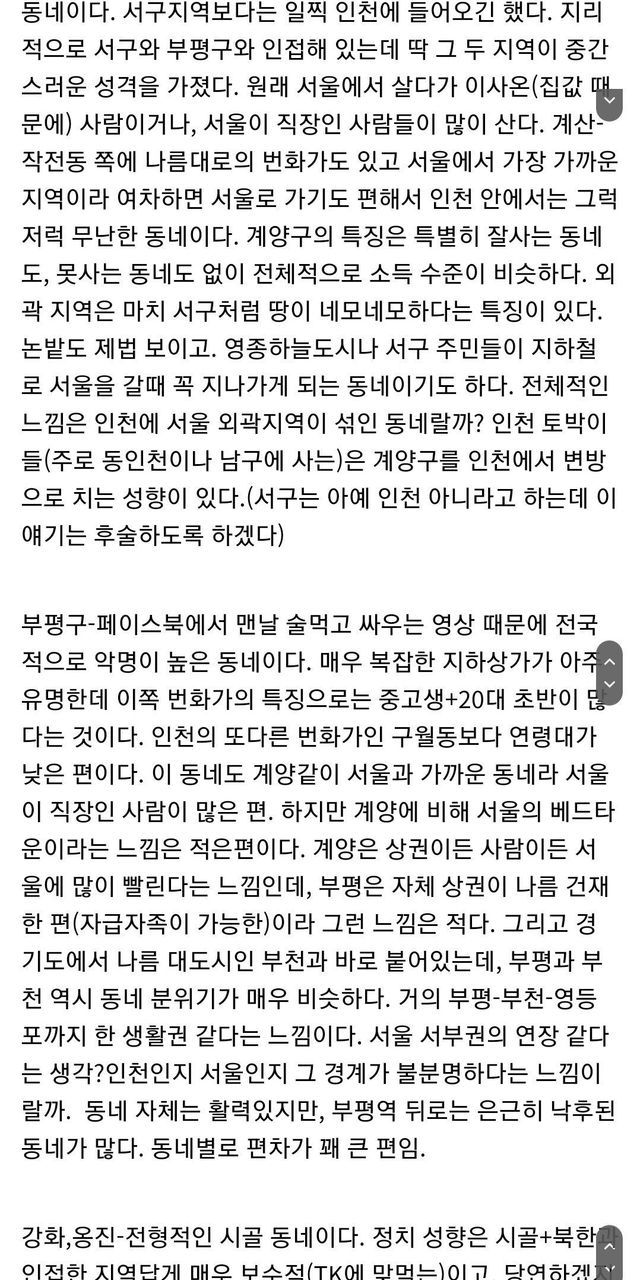 인천 사람이 말하는 인천의 지역별 특징.