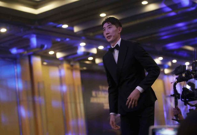 조현우(울산HD)가 29일 오후 서울 서대문구 스위스그랜드호텔에서 열린 프로축구 '하나은행 K리그 2024 대상 시상식'에서 K리그1 MVP에 호명된 후 단상을 오르고 있다. / 뉴스1