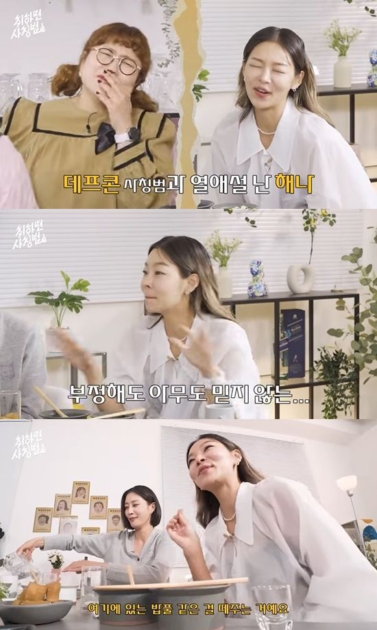"네가 그 말 했을 때 데프콘 오빠 반응은 어땠냐"라는 이현이의 말에 그는 "원래 평상시 같으면 오빠도 '얘 또 뭐 비즈니스하네' 그랬을 텐데, 내 얼굴에 붙은 밥풀을 떼주는 거다. 데프콘 오빠랑 전혀 없다"라며 열애설을 완강히 부인했다.