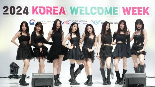 걸그룹 프로미스나인이 지난 4월 인천공항 1터미널 밀레니엄홀에서 열린 ‘한국방문의 해 환영주간 개막식’에서 화려한 축하공연을 선보이고 있다. / 뉴스1