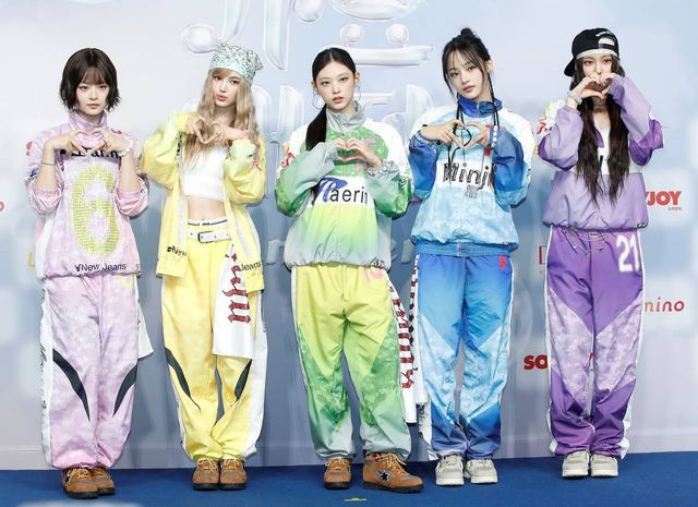뉴진스 하니(왼쪽부터)과 다니엘, 해린, 민지, 혜인이 지난 7월 인천광역시 중구 인스파이어 아레나에서 열린 ‘2024 SBS 가요대전 서머’ 블루카펫 행사에서 포즈를 취하고 있다. / 뉴스1