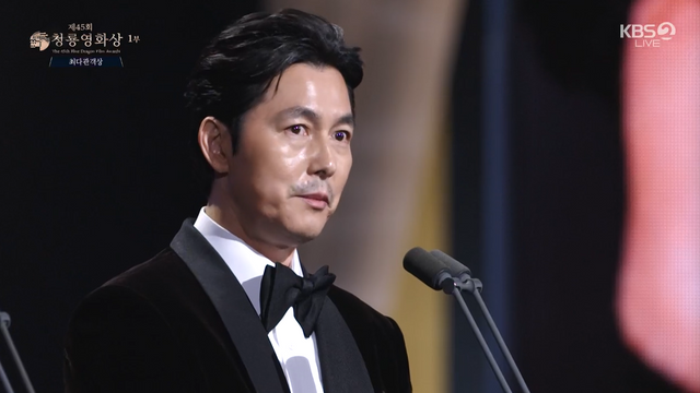 이후 황정민에 이어 정우성도 소감을 덧붙였다. 그는 "'서울의 봄'과 함께했던 모든 관계자들에게 저의 사적인 일이 영화에 오점으로 남지 않기를 바라는 마음으로 이 자리에 섰다. 또한, 저에게 사랑과 기대를 보내주셨던 모든 분들에게 염려와 실망을 안겨드린 점 진심으로 죄송하다고 말씀드립니다. 모든 질책은 제가 받고, 안고가겠습니다. 그리고 아버지로서 아들에 대한 책임은 끝까지 다할 것입니다"라고 밝히며 고개를 숙였다.