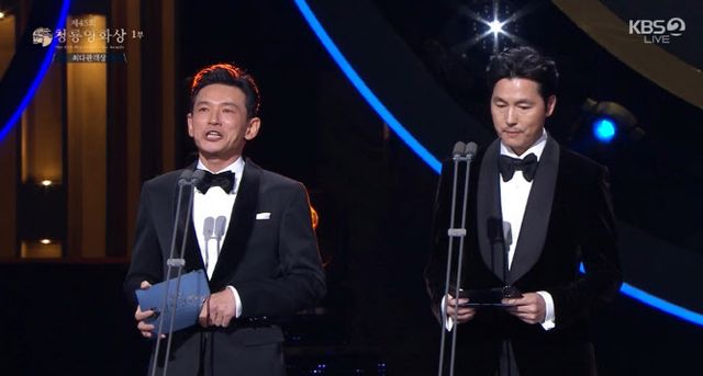 정우성은 29일 서울 여의도 KBS홀에서 열린 제45회 청룡영화상에서 황정민과 함께 최다관객상 시상자로 등장했다. 당초 정우성은 최근 불거진 사생활 논란으로 참석 여부가 불투명했으나, 고심 끝에 레드카펫만 불참하고 본 시상식에는 참석하기로 결정했다.