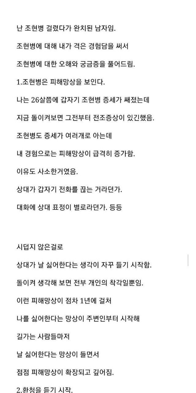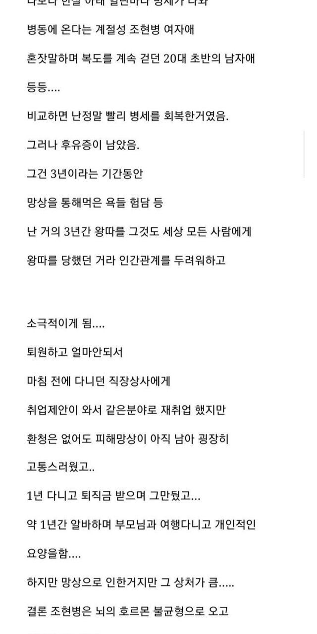 조현병 걸렸다가 완치된 ㅎㄱ..