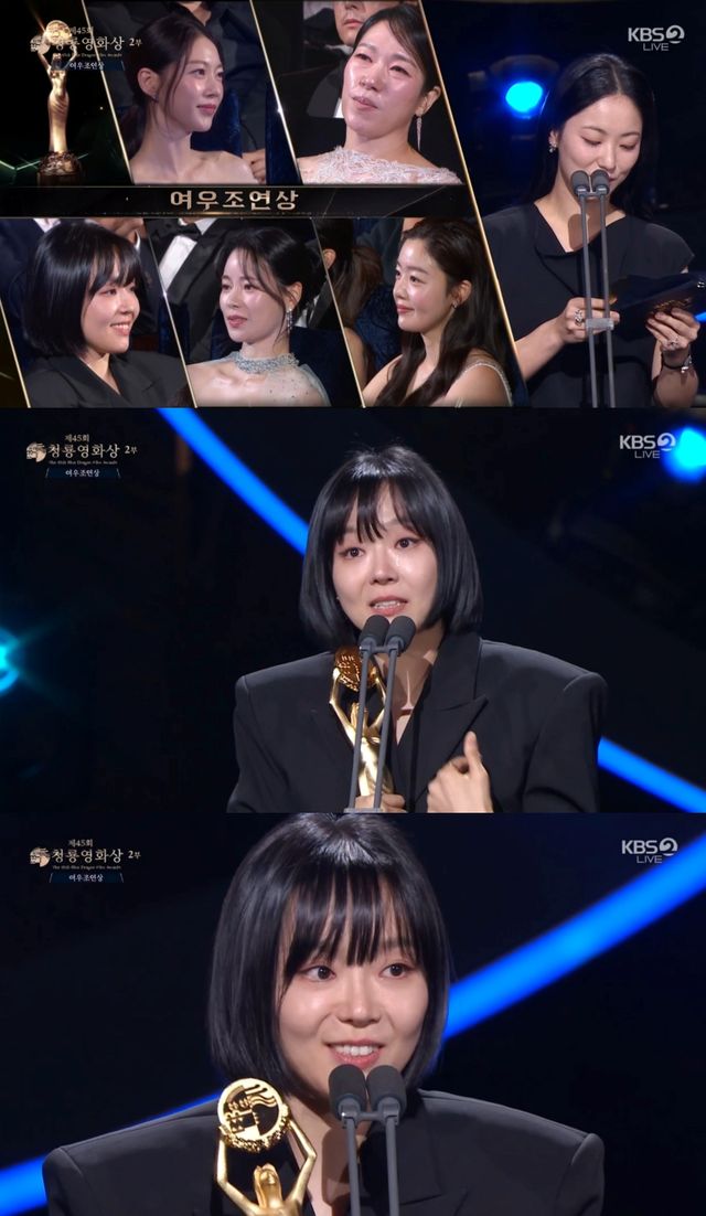 "계속해서 (연기를) 짝사랑하고 싶다"고 덧붙인 이상희는 "이 자리에 계신 모든 분들 축하드리고, 아빠 내일 회사에서 자랑하시고 자판기 커피 쏘세요"라며 재치 있게 소감을 마무리했다.