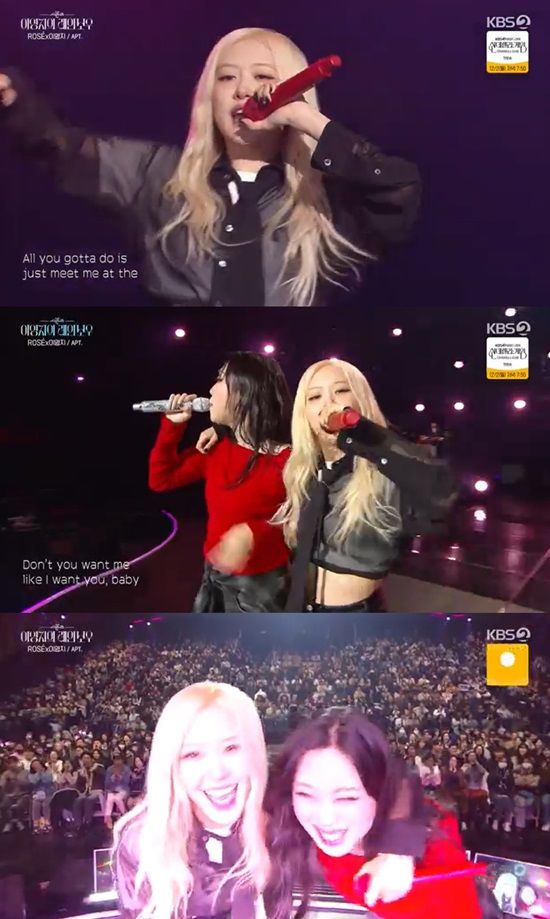 이날 두 번째로 무대에 오른 로제는 객석에서 화제의 신곡 '아파트(APT.)'를 부르며 깜짝 등장했다. 특히 브루노 마스 대신, MC 이영지가 무대에 올라 특별한 컬래버 무대를 만들어 환호를 받았다.