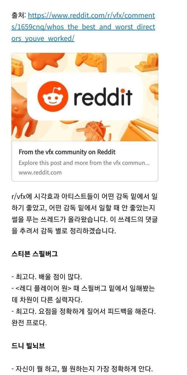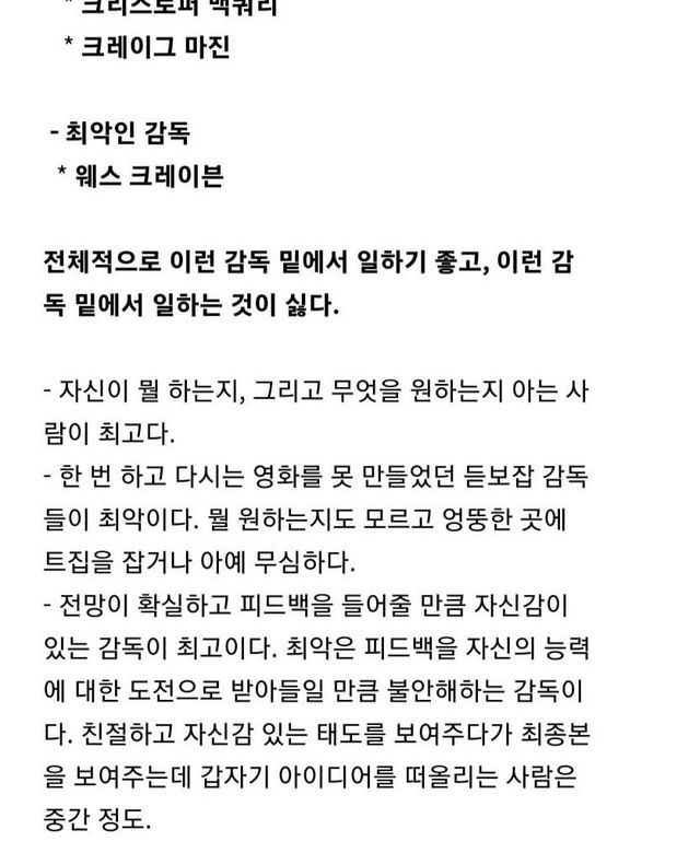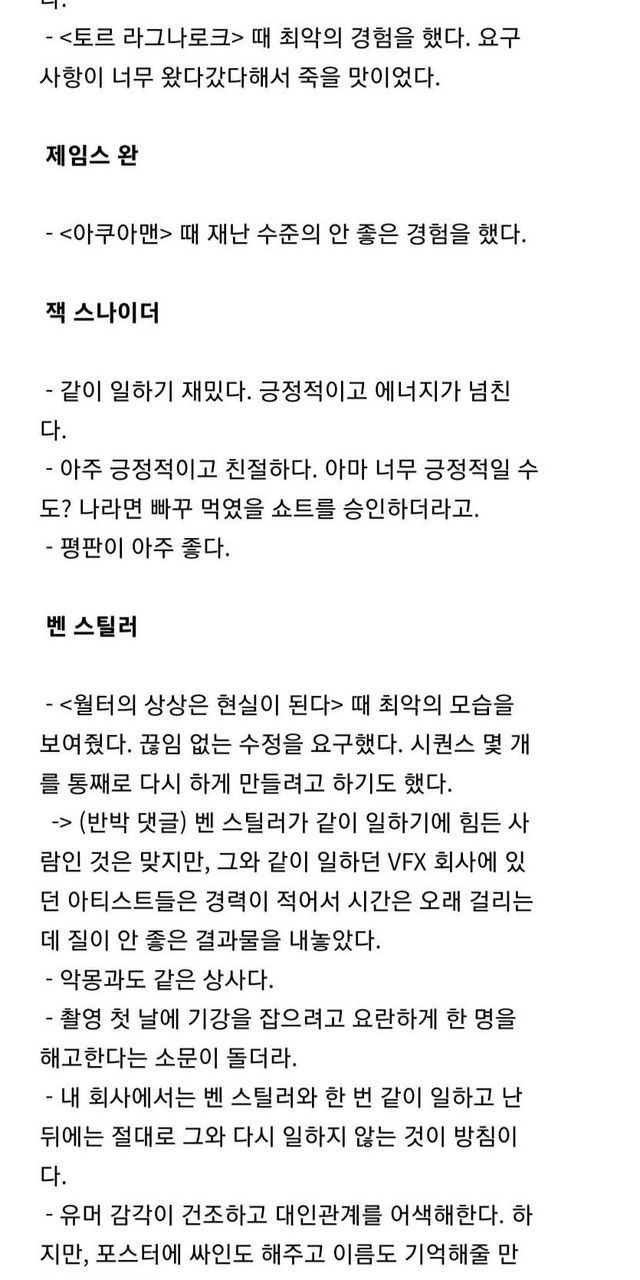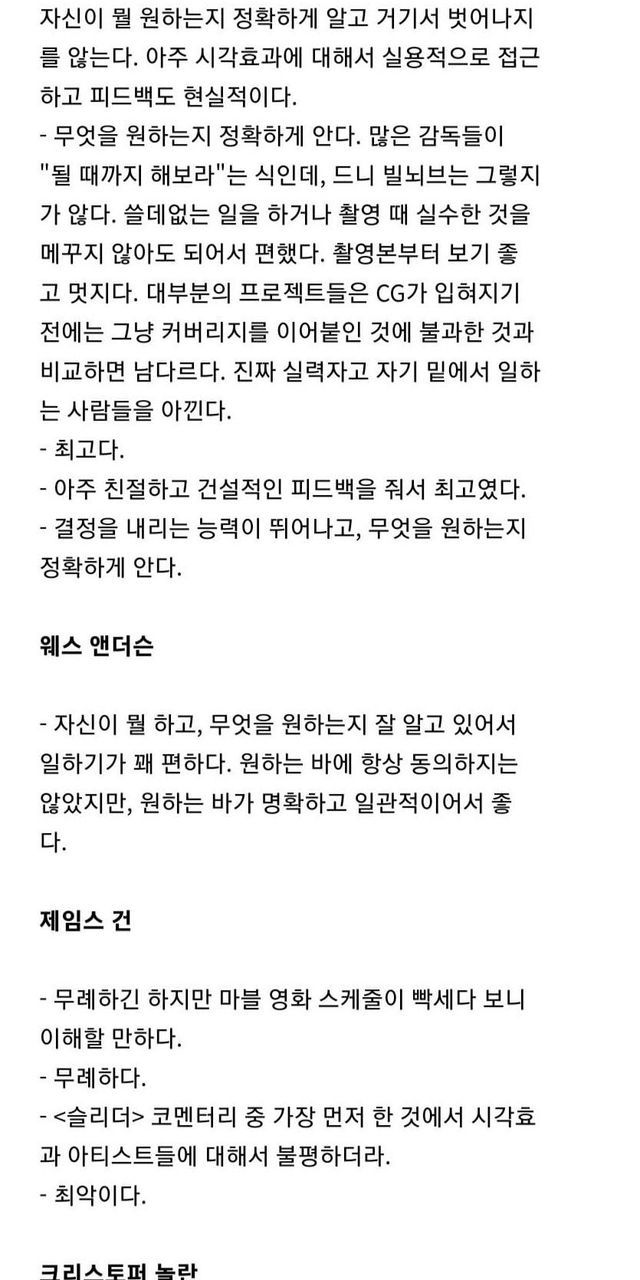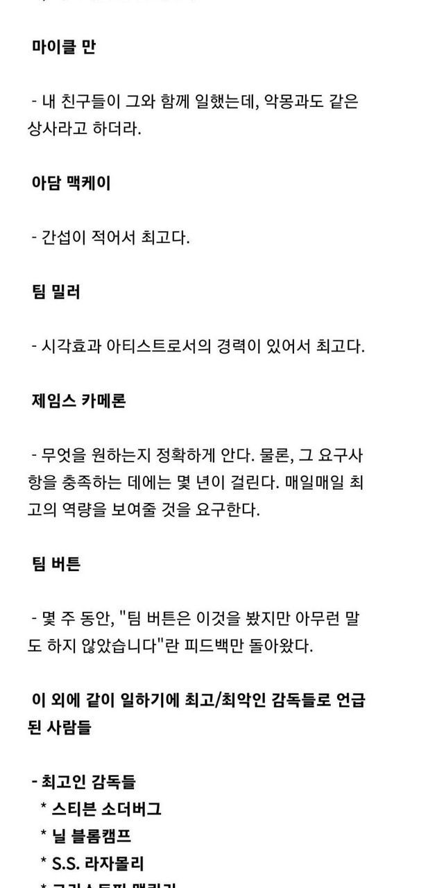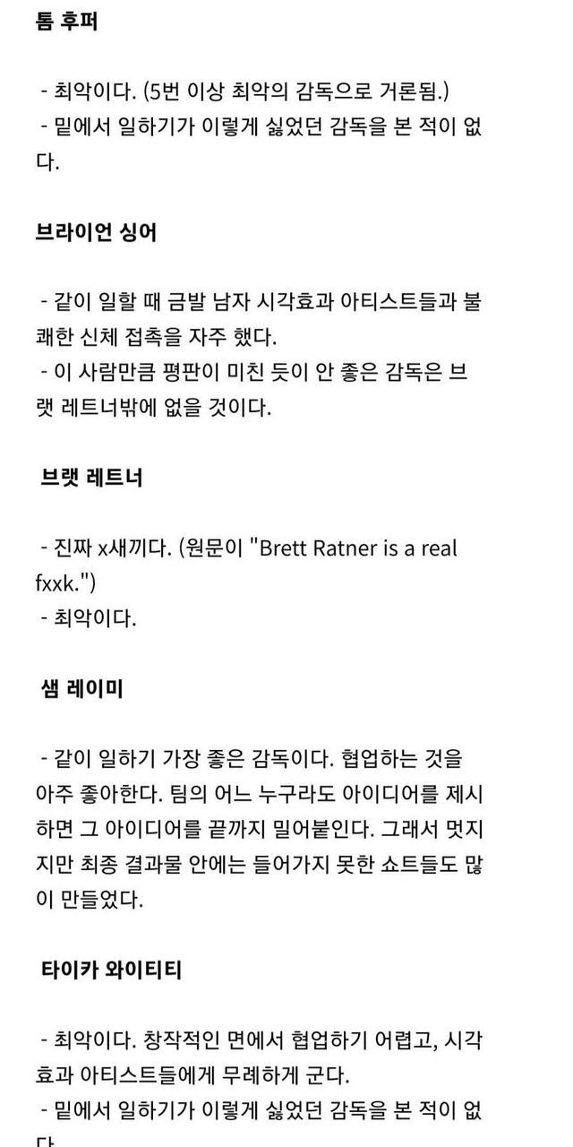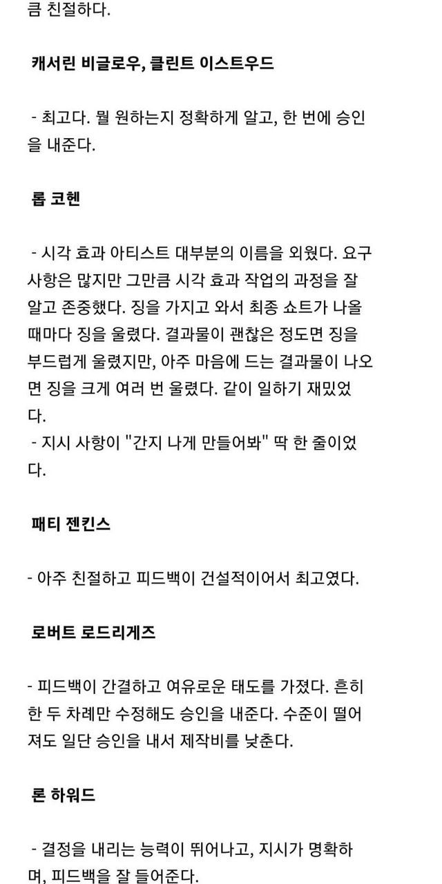 CG업계 엔지니어들이 평가한 유명 감독들.