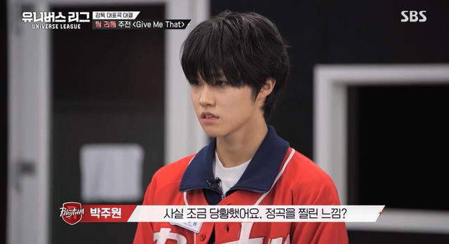 (엑스포츠뉴스 김예은 기자) '유니버스 리그' 참가자 박주원이 텐의 지적에 고개를 숙였다.