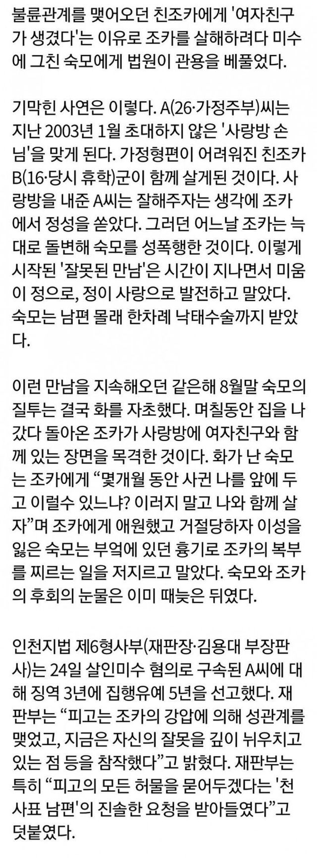 그러다 여자친구가 생긴 조카를 칼로 찌름