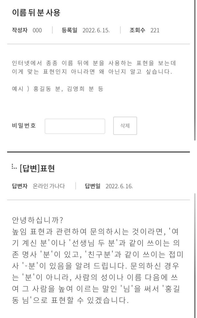 이름뒤에 분 붙이면 안된다는거 알았다 vs 몰랐다