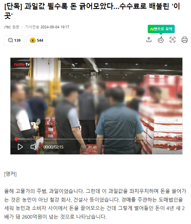 건설사,철강회사들이 과일 중간유통 세워 사재기로 4년간 2600억 벌었다고함.