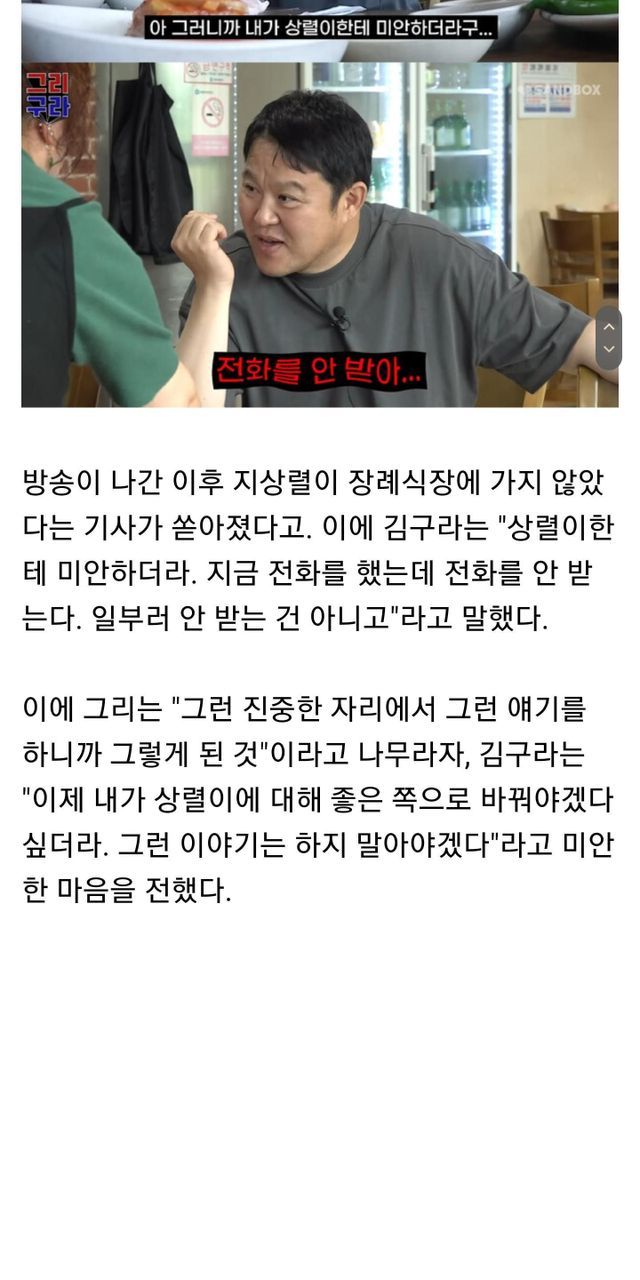 김구라 “지상렬, ‘父 장례식 불참’ 폭로 후 전화 안 받아.