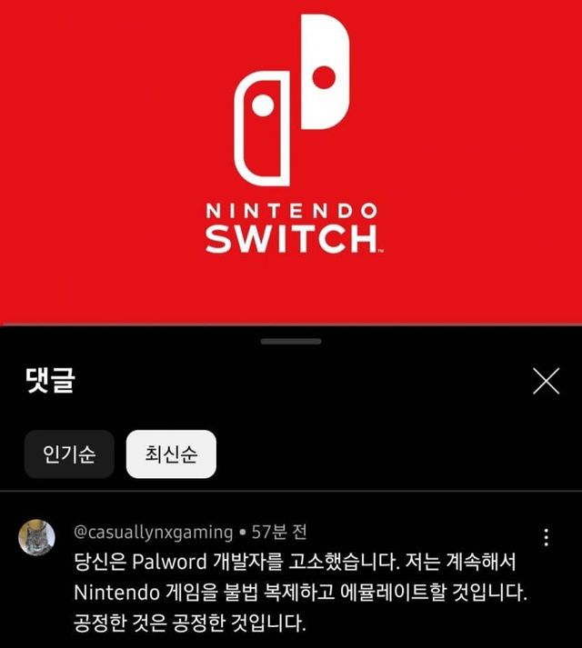 팰월드 고소한 죄로 앞으로도 계속 닌텐도 게임 불법복제하고 에뮬로 돌린다고 선언함 ㄷㄷㄷㄷㄷㄷ