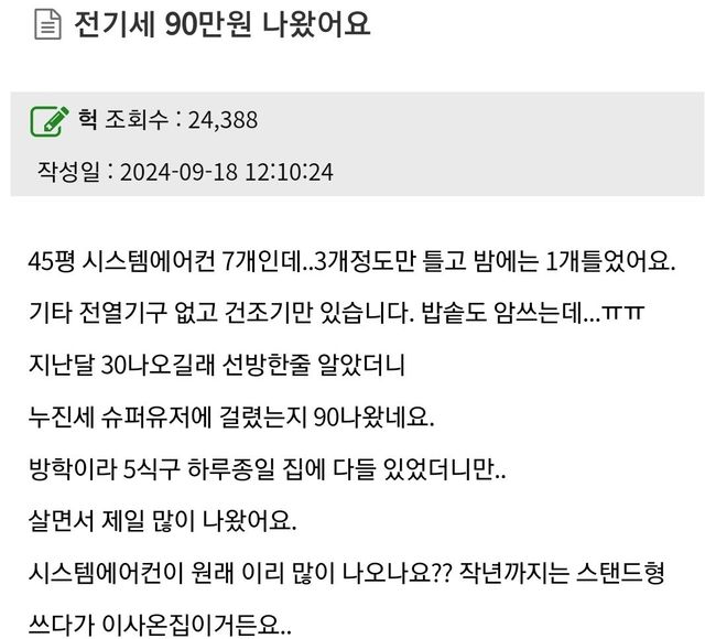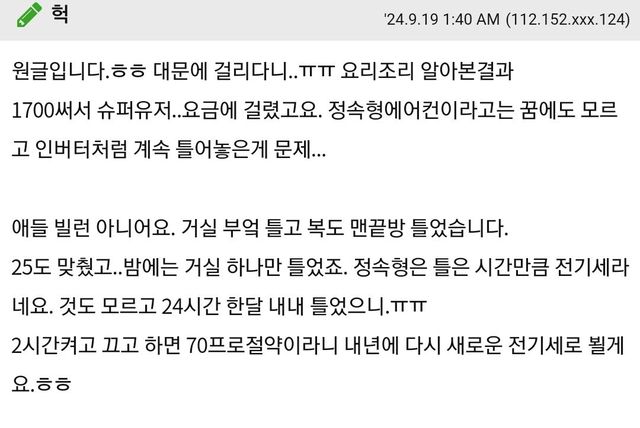 참고로 인버터는 24시간 내내 틀어도 저정도 아님(오히려 껐다꼈다하는게 안좋음)