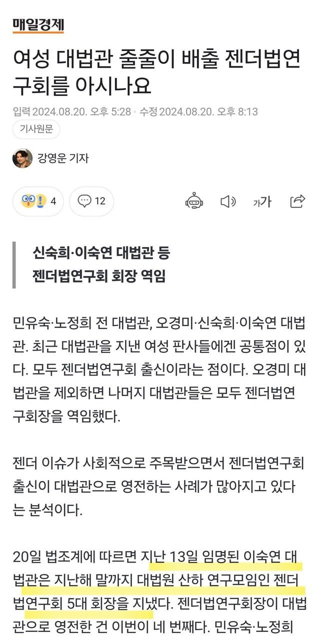 대법관 13명 중 2명은 이 젠더법연구회 회장 출신으로 이번에 임명됨ㅋ