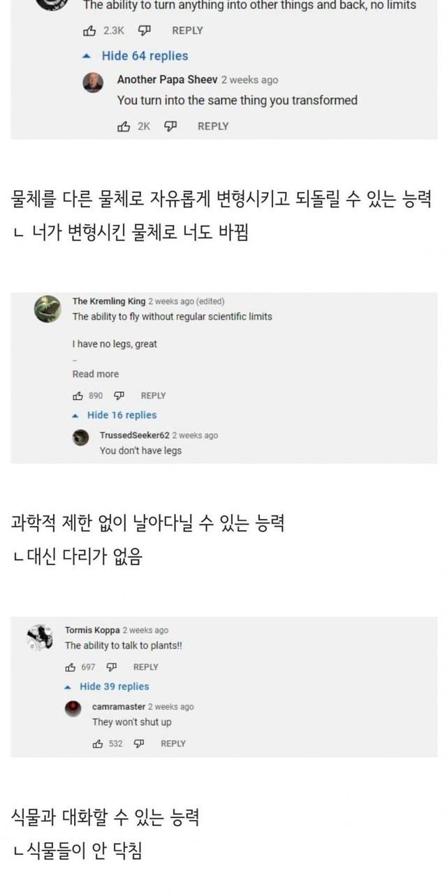 내가 초능력을 정하면 댓글로 부작용을 적어주세요ㅎㅎ