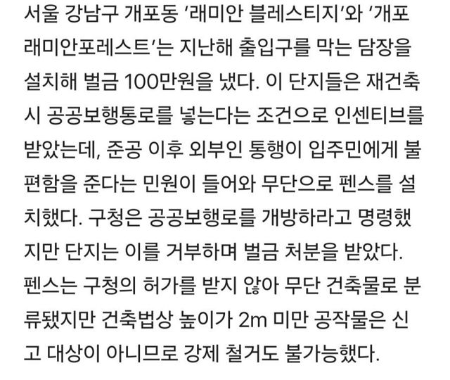 아파트 지을 때는 외부인들 단지 내 통행 안막는다고 용적률 인센티브 받아가고