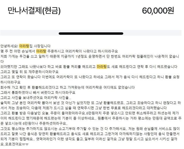 머리카락 나와서 환불시켜줌