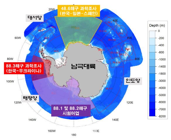 88.3해구는 남극해 중 태평양 쪽에 위치한 지역으로, 그간 이빨고기의 자원량이 추정된 적 없는 해역이다. 한국은 2016년부터 뉴질랜드, 우크라이나 등과 함께 과학조사를 진행해왔고, 세계 최초로 남극 이빨고기의 생태 특성을 밝혀내는 등 연구 성과를 올리기도 했다. 이러한 공로 덕분에 수과원은 88.3해구에서 내년부터 2027년까지 매년 94t의 조사 쿼터를 확보했다.