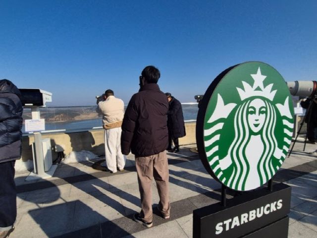 CNN은 이곳에서 “맑은 날에는 북한의 낮은 건물과 농장들을 볼 수 있으며 성능이 좋은 망원경이나 확대 기능이 있는 카메라가 있다면 주민들도 볼 수 있다”고 전했다. 그러면서 스타벅스 외부에 마련된 전망대에는 북한 전망을 보기 위한 손님들로 북적였다고 설명했다.