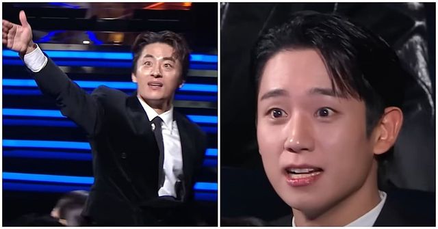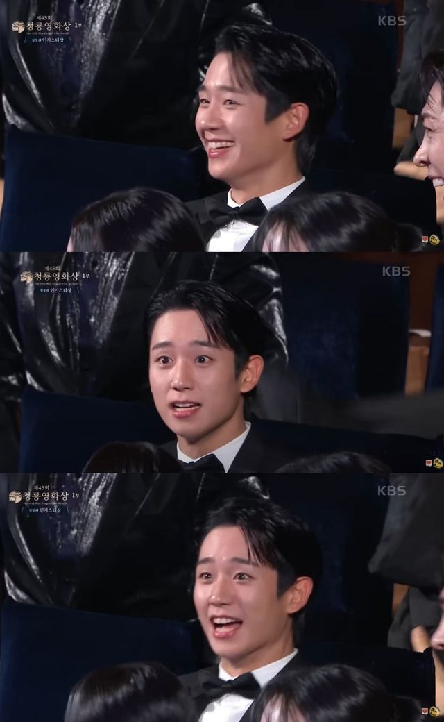 구교환 다음 인기스타상 수상자로 호명돼 깜짝 놀라는 정해인 / KBS2 '제45회 청룡영화상' 시상식