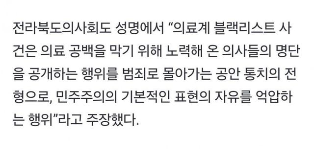 “의료계 블랙리스트 사건은 의료 공백을 막기 위해 노력해 온 의사들의 명단 을 공개하는 행위”