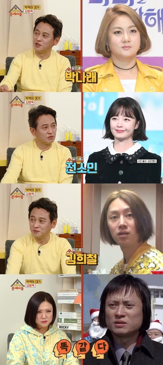 김숙을 닮은꼴로 인정한 김병옥은 "박나래 씨, 전소민 씨가 제 닮은꼴이다"라고 얘기했고, "김희철 씨도 닮았다"는 말에 곧바로 인정하며 남녀 성별을 뛰어넘는 '닮은꼴 부자' 면모를 자랑했다.