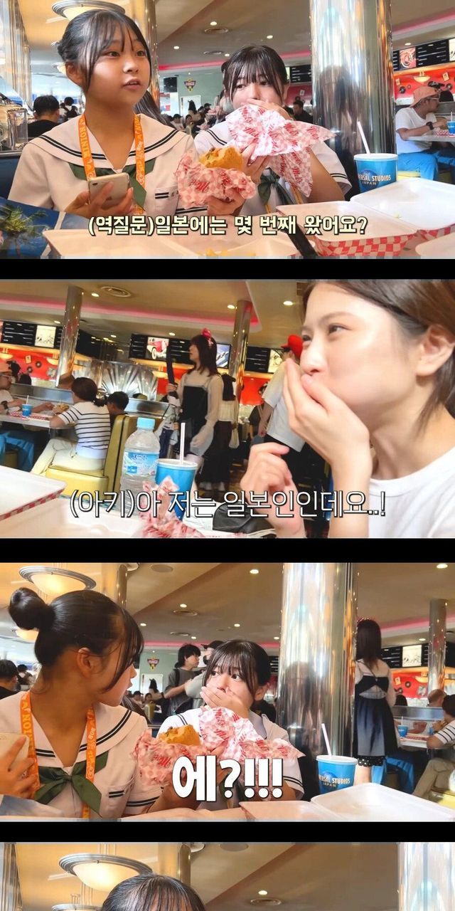 유니버셜 스튜디오 갔는데 자리없어서 멍때리는 여중생들 있어서 같이 합석하고
