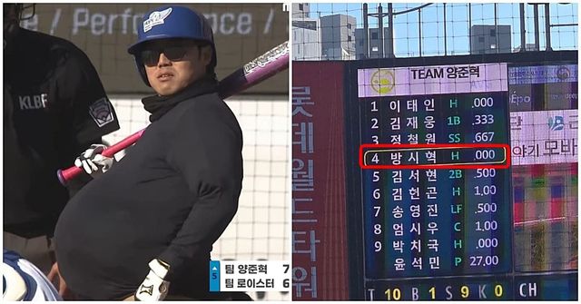 30일 열린 '제12회 희망더하기 자선야구대회' 스코어보드에 올라간 방시혁 이름 / 온라인 커뮤니티 '더쿠'