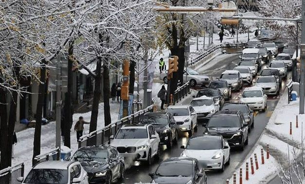 실제로 안양시 복지로에 설치된 신호등은 눈이 쌓이면서 아래로 꺾였다. 용인시 상현역 앞 도로의 신호등 역시 아래로 기울어 신호가 보이지 않는 상태다.
