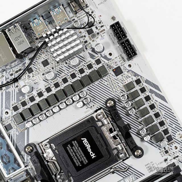 14+2+1 페이즈 Dr.MOS 전원부는 고성능 CPU를 안정적으로 지원하며, 1,000uF 고용량 커패시터를 통해 전력 효율성을 극대화했다. 이는 장시간 고부하 작업이나 오버클러킹 환경에서도 뛰어난 안정성을 제공한다.