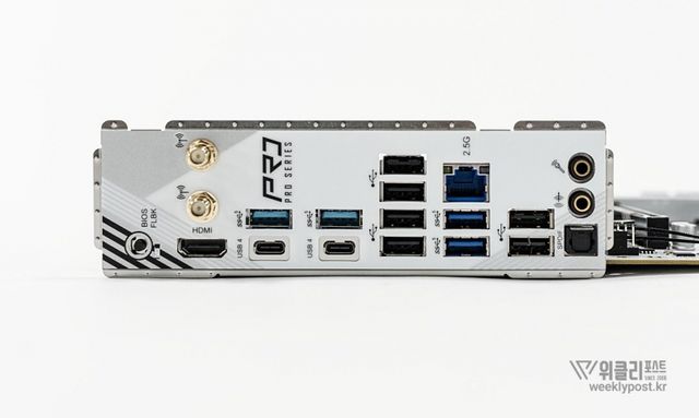 기능적인 측면에서 Wi-Fi 7과 블루투스를 지원하며, 2개 USB 4 Type-C 포트는 최대 40Gbps의 데이터 전송 속도를 지원하며, USB 3.2 Gen1 포트 4개와 USB 2.0 포트 6개를 갖췄다.