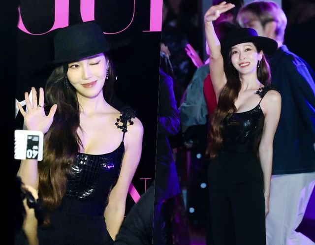 제시카는 블링블링한 민소매탑에 블랙 팬츠와 블랙 모자를 매칭한 시크하면서도 도도한 모습이다. 과감한 민소매 탑에 그의 아름다운 보디라인이 고스란히 드러나며 감탄을 더한다.
