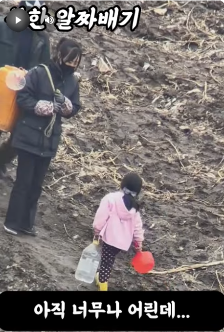 노역에 동원되어 물을 나르는 4살 여자어린이