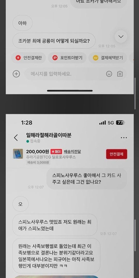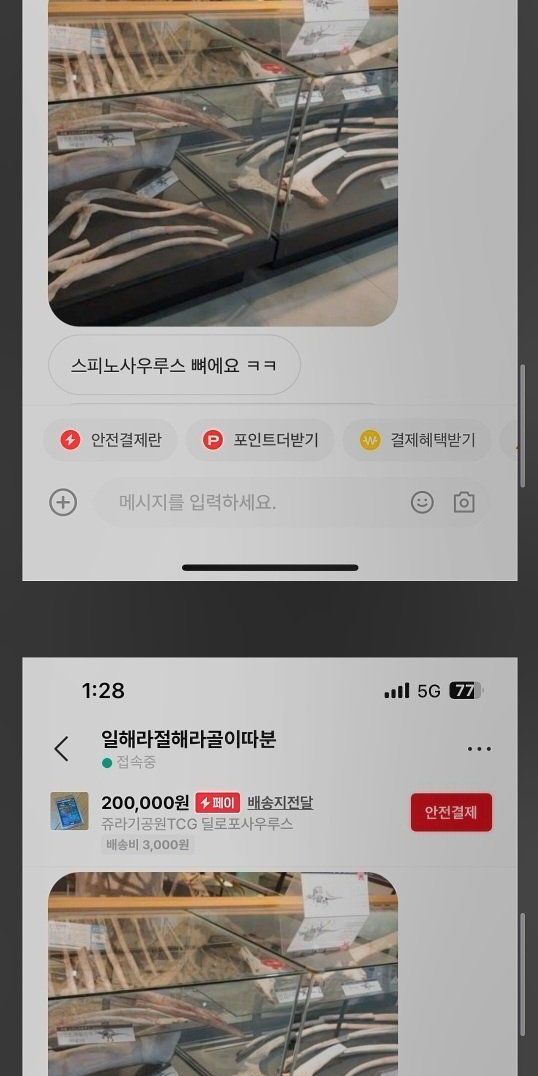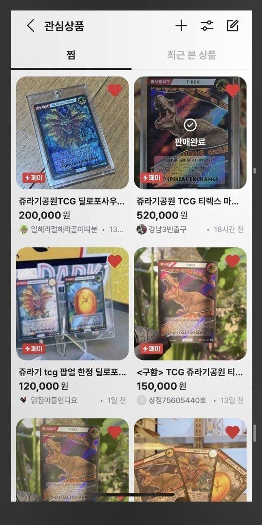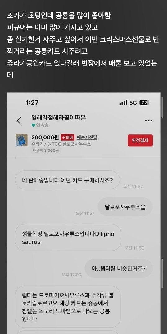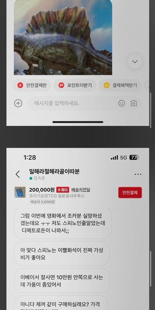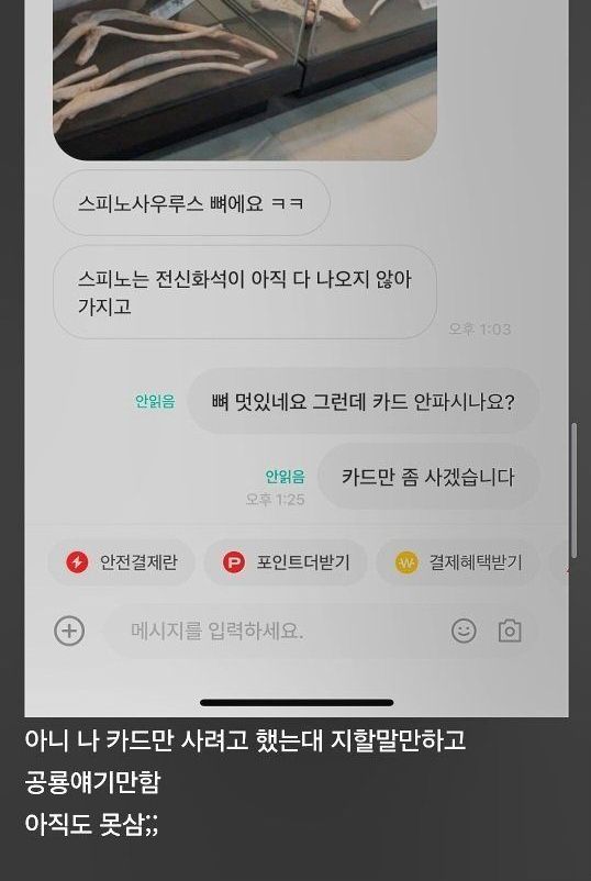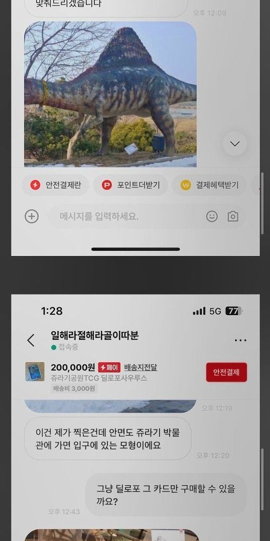 번개장터에서 공룡 카드 사려다 물려버림
