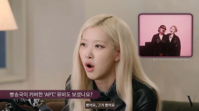 '빵송국'의 커버 영상도 화제였다. 개그맨 곽범이 브루노 마스로, 엄지윤이 로제로 변신해 뮤직비디오를 완벽 패러디한 것. 아에 대해 로제는 "봤다. 아예 똑같이 만들었더라. 저 진짜 깜짝 놀랐다"면서 "그 카메라 앵글이랑 이런 것도 다"라며 감탄했다.