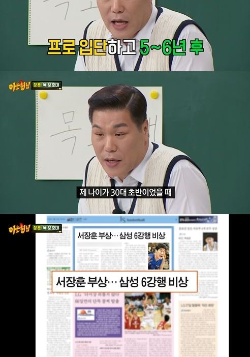 서장훈은 "의사 선생님이 뛰는 건 어렵다더라. 그때 참 고민이 많았다. 31살밖에 안 됐었고"라고 말했다.