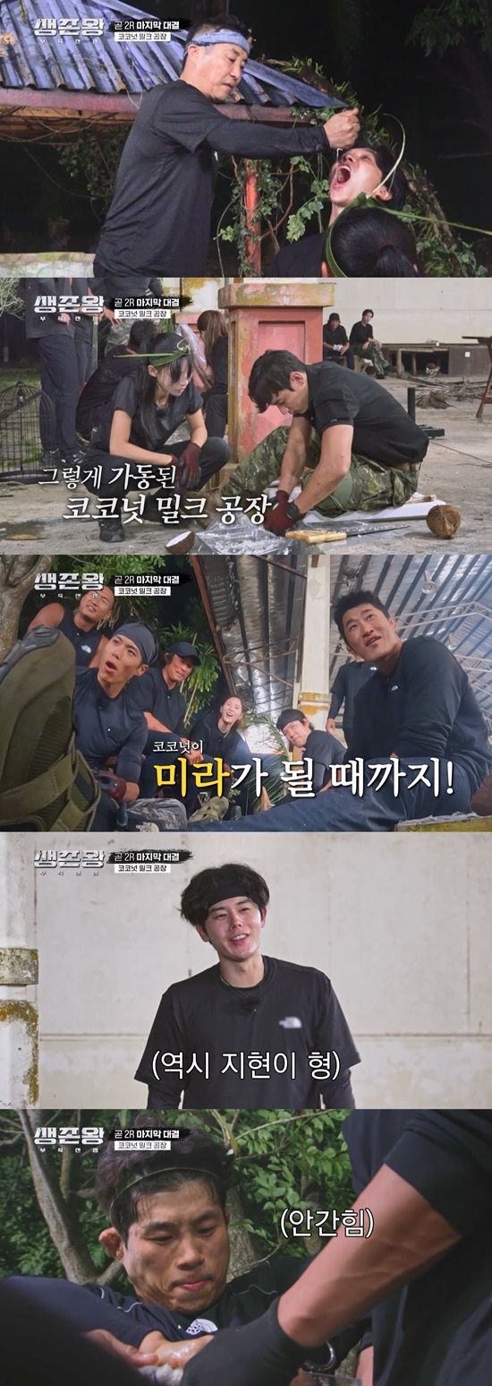 이후 '파이터' 김동현은 물론 ‘피지컬 100’ 우승자 출신인 아모띠까지 그간 키워온 근육을 뽐내며 코코넛 속을 파내기 시작했다.