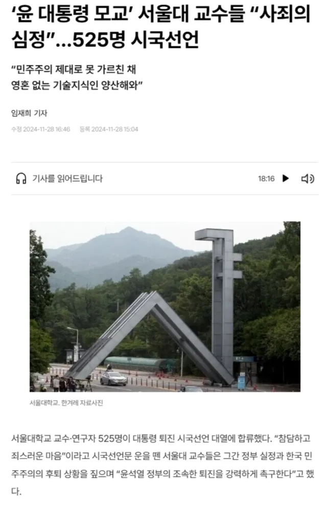 ‘윤 대통령 모교’ 서울대 교수들 “사죄의 심정”.. 525명 시국선언
