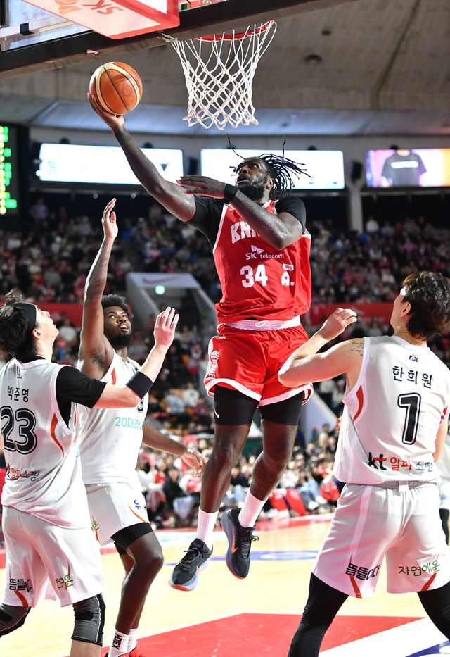 에이스 허훈(오른 손목 부상) 주축 센터 하윤기(오른쪽 무릎 통증) 포워드 문정현(오른쪽 발목)이 모두 빠진 KT는 레이션 해먼즈가 19점, 포워드 박준영이 13점을 꽂았다. 하지만 허훈의 공백을 메우기엔 역부족이었다. 3점 대결에서도 성공률 9%로 SK에 크게 밀렸다.