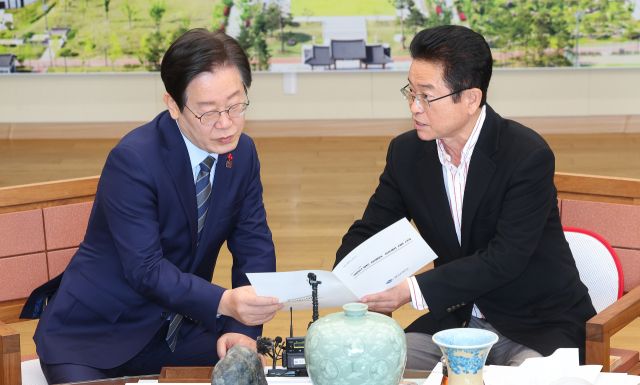 다만 이 대표는 국민의힘 소속인 이 지사가 "민주당이 의회 권력을 독점하고 있다. 국회에서 감액안만 반영한 예산안을 처리하는 것은 처음 본다"고 지적하자 "APEC 사업의 경우 우리도 현실적으로 공감을 하는 사안"이라면서도 감액안에 대해서는 "쓸데없는 것만 잘라낸 것", "증액이 필요하면 (정부가) 수정안을 내면 된다"고 강경기조를 유지했다. 감액안의 수정은 불가능하며, 정부의 수정안이 선결 조건이라는 것이다. 그는 이 지사가 처리 시한이 촉박하다는 취지로 반발하자 "정말로 진지한 협상이 가능하다면 그거야 길이 없겠나"라고도 했다.
